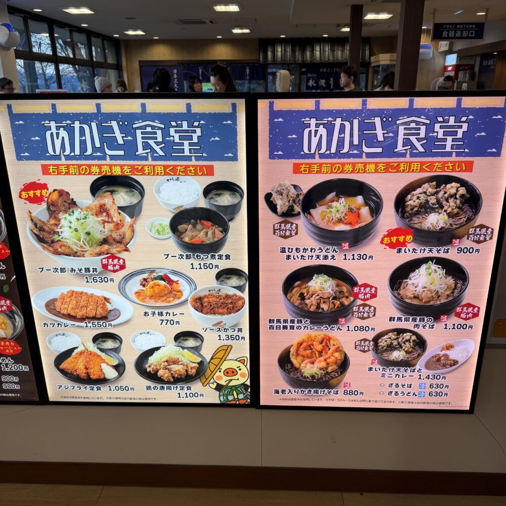 赤城山SAには、軽食・フードコートあり、ラーメンやカレー、定食など充実しています。