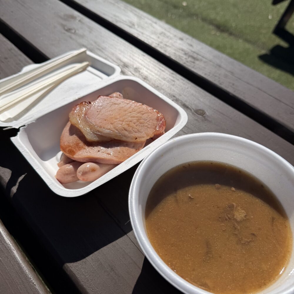 6時過ぎには明るくなり、サービスエリアで少し早めの朝食です。標高も高く、厚手の上着でも寒く温かい食べ物が欲しくなります。