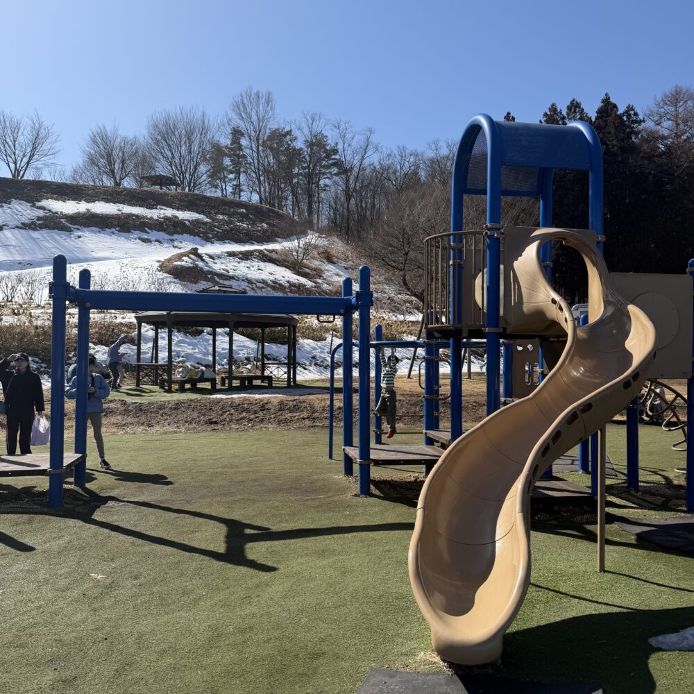 冬季期間は休業中でしたが、本格的なネットアスレチックや、ブルーベリー摘み取り体験など、子ども連れには嬉しい施設がたくさんありました。
